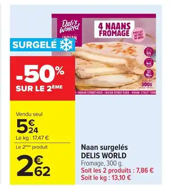 Y a-t-il une promotion sur DELIS WORLD Naan surgelés la semaine prochaine chez Carrefour ?