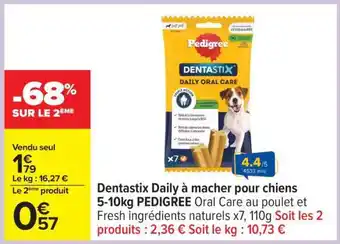 Actuellement en offre chez Carrefour : Dentastix Daily à mâcher pour chiens 5-10kg PEDIGREE ✅ Valable du 10-03 au 23-03.