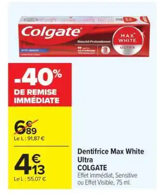 Offre Dentifrice Max White Ultra 'Colgate' chez Carrefour