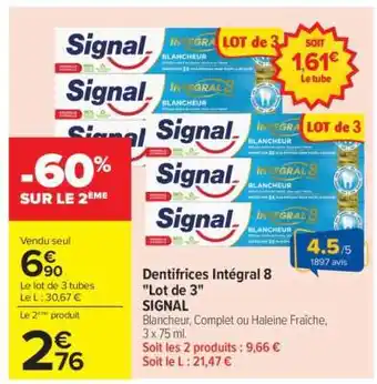 Actuellement en offre chez Carrefour : Dentifrices Intégral 8 Lot de 3 SIGNAL ✅ Valable du 22-01 au 9-02.