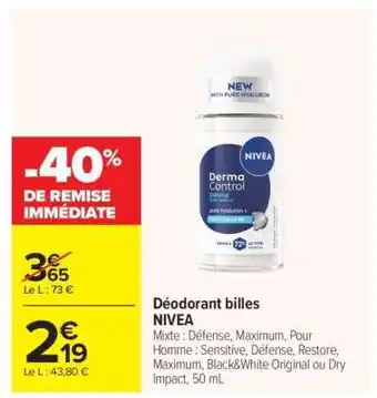 Actuellement en offre chez Carrefour : Déodorant billes NIVEA ✅ Valable du 6-01 au 19-01.