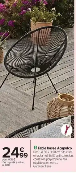 Offre Dim - table basse acapulco chez Carrefour
