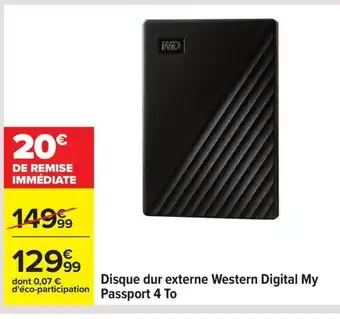 Disque dur externe Western Digital My Passport 4 To offres et promotions en ligne chez Carrefour