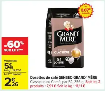 Actuellement en offre chez Carrefour : Dosettes de café Senseo GRAND MÈRE ✅ Valable du 17-02 au 2-03.