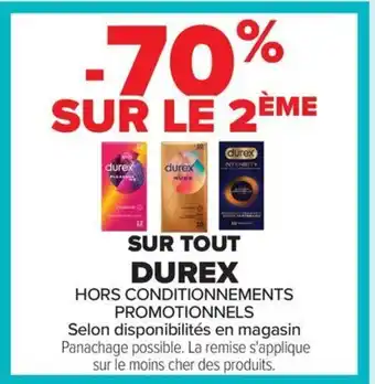 En plus de l'offre DUREX sur tout, Carrefour propose une large gamme de produits. Consultez le Catalogue Carrefour hebdomadaire pour découvrir les meilleures offres et promotions. En plus de DUREX sur tout, il y a aussi : SUR TOUT DUREX, UTC4 Sur tout & SKIP Sur tout.