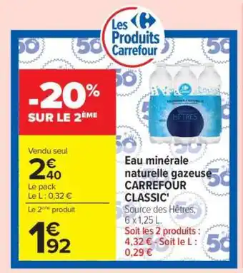 Eau minérale naturelle gazeuse CARREFOUR CLASSIC' offres et promotions en ligne chez Carrefour