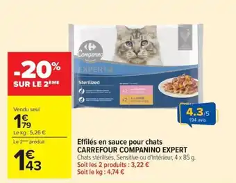Effilés en sauce pour chats CARREFOUR COMPANINO EXPERT : offres et promos Carrefour à découvrir