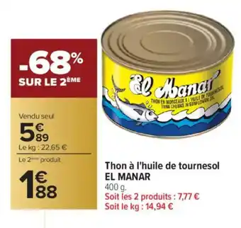Offre EL MANAR Thon à l'huile de tournesol chez Carrefour