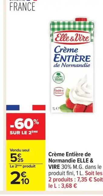 ELLE & VIRE Crème Entière de Normandie : offres et promos Carrefour à découvrir