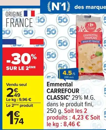 Offre Emmental carrefour classic chez Carrefour
