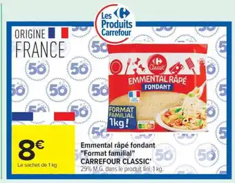 Emmental râpé fondant Format familial CARREFOUR CLASSIC : offres et promos Carrefour à découvrir