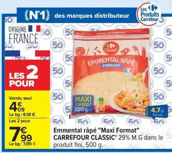 Offre Emmental râpé Maxi Format chez Carrefour