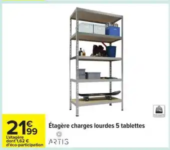 En plus de l'offre Étagère charges lourdes 5 tablettes, Carrefour propose une large gamme de produits. Consultez le Catalogue Carrefour hebdomadaire pour découvrir les meilleures offres et promotions. En plus de Étagère charges lourdes 5 tablettes, il y a aussi : ETAGERE CHARGES LOURDES 4 TABLETTES, Artis - étagère charges lourdes 5 tablettes & ARTIS Étagère charges lourdes 5 tablettes.