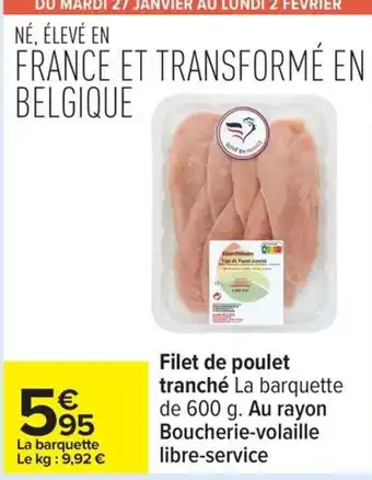 En plus de l'offre Filet de poulet tranché, Carrefour propose une large gamme de produits. Consultez le Catalogue Carrefour hebdomadaire pour découvrir les meilleures offres et promotions. En plus de Filet de poulet tranché, il y a aussi : Filet de poulet tranche, Filet mignon tranché & FILET DE POULET.