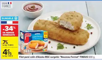 Filet pané colin d'Alaska MSC surgelés Nouveau Format FINDUS 600 g offres et promotions en ligne chez Carrefour