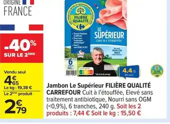 En plus de l'offre FILIÈRE QUALITÉ CARREFOUR Jambon Le Supérieur, Carrefour propose une large gamme de produits. Consultez le Catalogue Carrefour hebdomadaire pour découvrir les meilleures offres et promotions. En plus de FILIÈRE QUALITÉ CARREFOUR Jambon Le Supérieur, il y a aussi : Carrefour - jambon cuit supérieur avec couenne filiere qualite, Jambon cuit au torchon qualité supérieur avec couenne FILIÈRE QUALITÉ CARREFOUR & Carrefour - jambon cuit au torchon qualite superieur avec couenne filiere qualite.