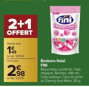 En plus de l'offre FINI Bonbons Halal, Carrefour propose une large gamme de produits. Consultez le Catalogue Carrefour hebdomadaire pour découvrir les meilleures offres et promotions. En plus de FINI Bonbons Halal, il y a aussi : FINI Bonbons Halal, Bonbons Halal FINI & Fini - bisous fraise halal.