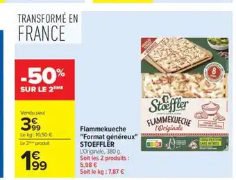 Actuellement en offre chez Carrefour : Flammekueche Format généreux STOEFFLER ✅ Valable du 28-04 au 11-05.