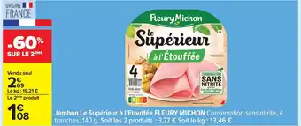 FLEURY MICHON Jambon Le Supérieur à l'Etouffée : offres et promos Carrefour à découvrir