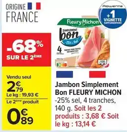 Fleury michon - jambon simplement bon offres et promotions en ligne chez Carrefour