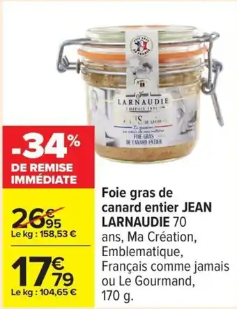 Foie gras de canard entier jean larnaudie offres et promotions en ligne chez Carrefour