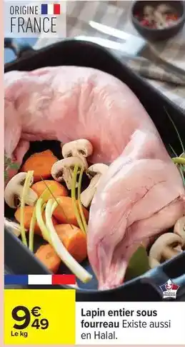 Actuellement en offre chez Carrefour : Francaise - lapin entier sous fourreau existe aussi en halal ✅ Valable du 3-03 au 16-03.