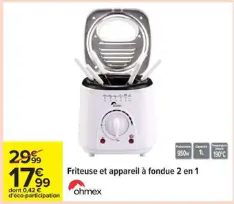 En plus de l'offre Friteuse et appareil à fondue 2 en 1, Carrefour propose une large gamme de produits. Consultez le Catalogue Carrefour hebdomadaire pour découvrir les meilleures offres et promotions. En plus de Friteuse et appareil à fondue 2 en 1, il y a aussi : Ohmex friteuse et appareil à fondue 2 en 1, appareil à fondue & Appareil à fondue.