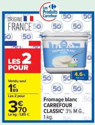 Offre Fromage Blanc CARREFOUR CLASSIC' chez Carrefour