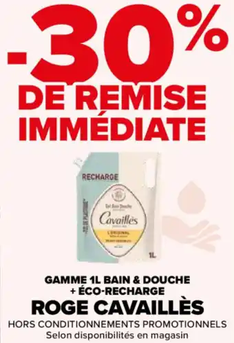 Gamme bain & douche + éco-recharge roge cavaillès : offres et promos Carrefour à découvrir