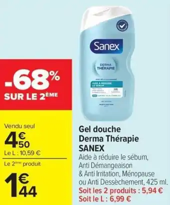 Gel douche Derma Thérapie SANEX : offres et promos Carrefour à découvrir
