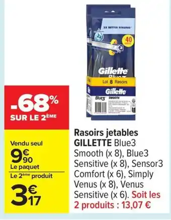 Actuellement en offre chez Carrefour : GILLETTE Rasoirs jetables ✅ Valable du 27-01 au 9-02.