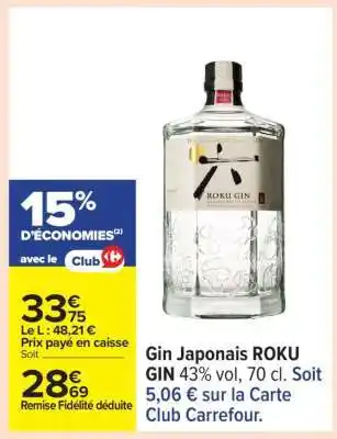 En plus de l'offre Gin Japonais ROKU GIN, Carrefour propose une large gamme de produits. Consultez le Catalogue Carrefour hebdomadaire pour découvrir les meilleures offres et promotions. En plus de Gin Japonais ROKU GIN, il y a aussi : Roku gin gin japonais, ROKU Gin japonais & GIN JAPONAIS 'ROKU'.