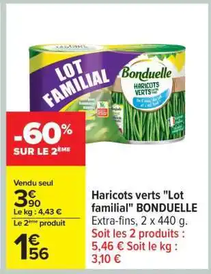 Actuellement en offre chez Carrefour : Haricots verts Lot Familial BONDUELLE ✅ Valable du 13-01 au 26-01.