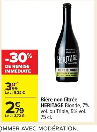 HERITAGE Bière non filtrée : offres et promos Carrefour à découvrir