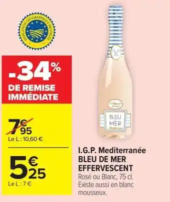 Actuellement en offre chez Carrefour : I.G.P. Mediterranée BLEU DE MER EFFERVESCENT ✅ Valable du 5-05 au 18-05.