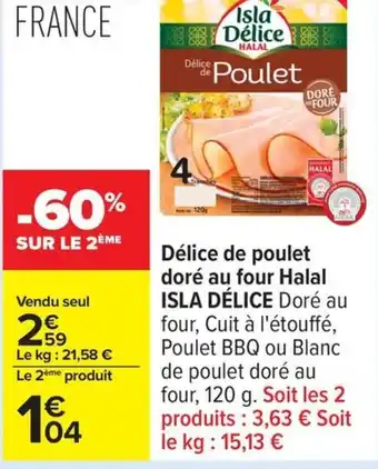 ISLA DÉLICE Délice de poulet doré au four Halal : offres et promos Carrefour à découvrir