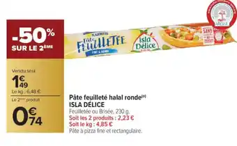 Offre ISLA DÉLICE Pâte feuilleté halal ronde chez Carrefour