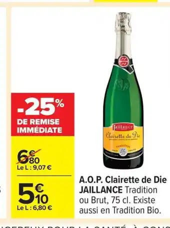 JAILLANCE A.O.P. Clairette de Die offres et promotions en ligne chez Carrefour
