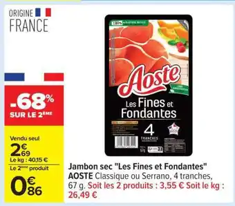 Jambon sec Les Fines et Fondantes AOSTE : offres et promos Carrefour à découvrir