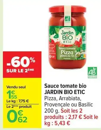 JARDIN BIO ETIC Sauce tomate bio offres et promotions en ligne chez Carrefour