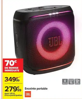 En plus de l'offre JBL Enceinte portable, Carrefour propose une large gamme de produits. Consultez le Catalogue Carrefour hebdomadaire pour découvrir les meilleures offres et promotions. En plus de JBL Enceinte portable, il y a aussi : JBL Enceinte bluetooth portable, JBL Enceinte sans fil & Jbl - enceinte partybox c 120.