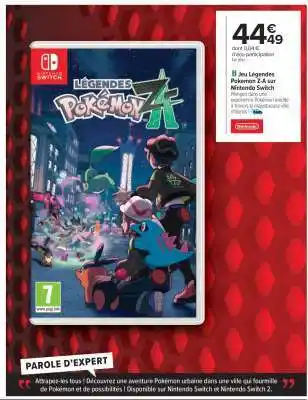 Actuellement en offre chez Carrefour : Jeu Légendes Pokémon Z-A sur Nintendo Switch ✅ Valable du 7-01 au 26-01.