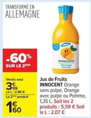Actuellement en offre chez Carrefour : Jus de Fruits 'Innocent' ✅ Valable du 24-02 au 9-03.