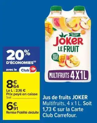 Jus de fruits JOKER : offres et promos Carrefour à découvrir