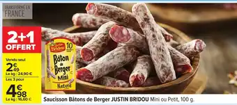 Offre JUSTIN BRIDOU Saucisson Bâtons de Berger chez Carrefour