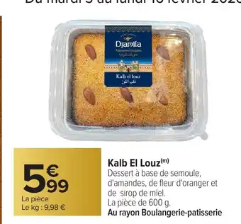 En plus de l'offre Kalb El Louz, Carrefour propose une large gamme de produits. Consultez le Catalogue Carrefour hebdomadaire pour découvrir les meilleures offres et promotions. En plus de Kalb El Louz, il y a aussi : Gâteau aux amandes kalb el louz, Les délices de djamila - kalb el louz & El Mundo.