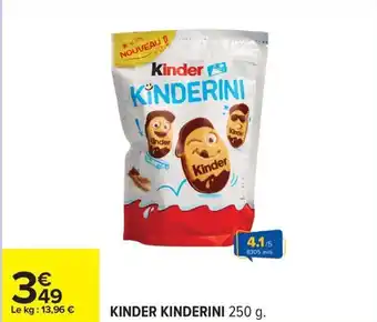 En plus de l'offre Kinder kinderini, Carrefour propose une large gamme de produits. Consultez le Catalogue Carrefour hebdomadaire pour découvrir les meilleures offres et promotions. En plus de Kinder kinderini, il y a aussi : KINDER Kinderini, KINDER KINDERINI 250 g & KINDER Country.