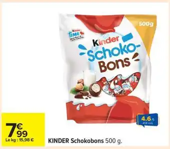 Actuellement en offre chez Carrefour : KINDER SCHOKOBONS 500 g ✅ Valable du 27-01 au 9-02.