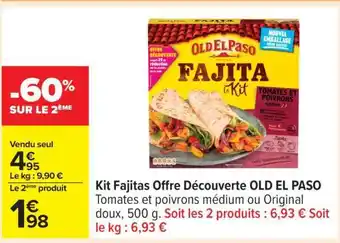 Actuellement en offre chez Carrefour : Kit Fajitas Offre Découverte OLD EL PASO ✅ Valable du 3-02 au 16-02.