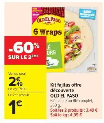 Actuellement en offre chez Carrefour : Kit Fajitas Offre Découverte OLD EL PASO ✅ Valable du 7-04 au 20-04.
